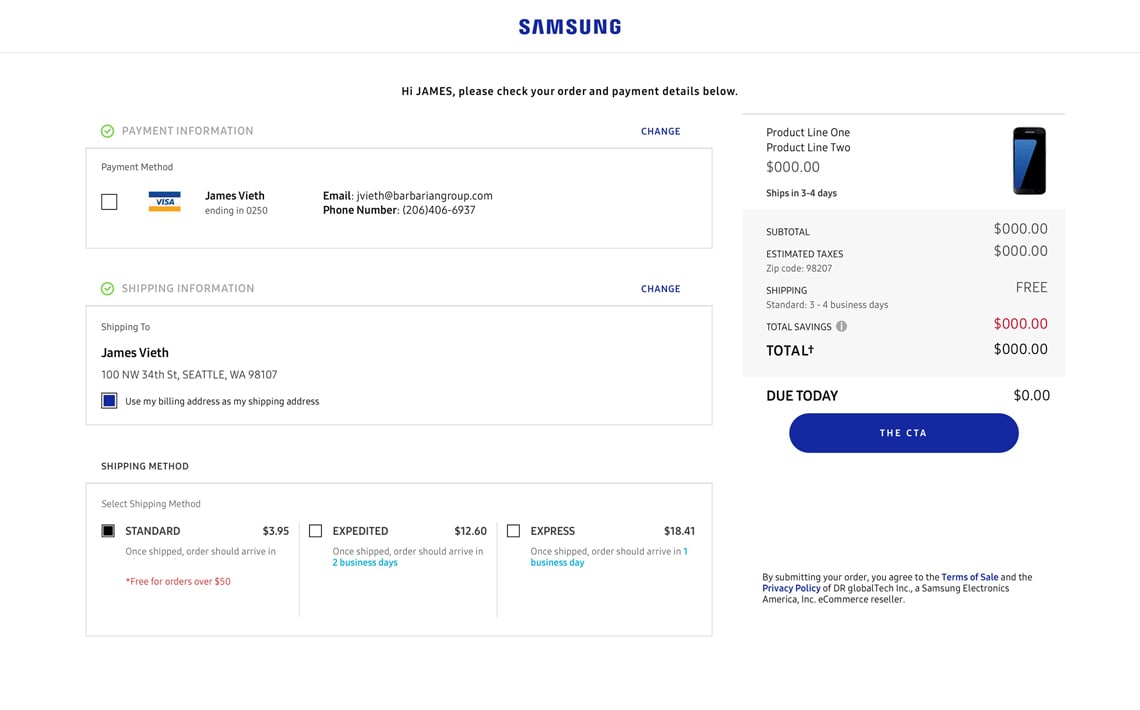 Samsung Checkout Redesign